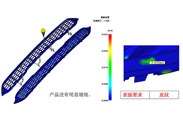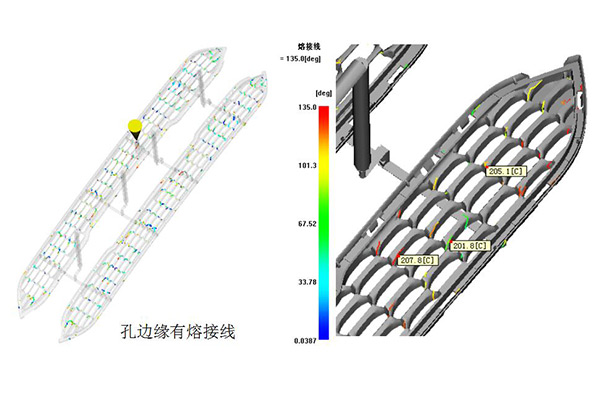 使用模流分析預(yù)測(cè)產(chǎn)品縮痕,熔接線,翹曲情況和注塑機(jī)噸位。